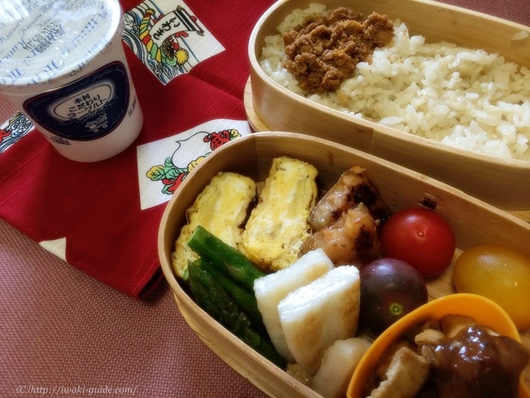 管理人Kの本日のお弁当です。昨日、日本橋タカシマヤでいわきの大川魚店さんから購入した「ハラスの味噌焼き」とうにみそ。ネットで購入したとまとランドいわきさんのミニトマト、同じくネットで購入した山玉町加茂さんのこだわりなめこと、とうふ屋大楽の油揚げを味噌炒めにしたものが入っています。あ、食後のデザートには木村ミルクプラントさんのヨーグルトを☆