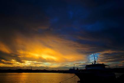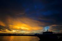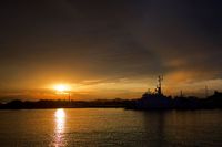 夕陽と巡視船「なつい(PM40)」をシルエットで。