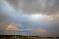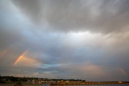 東の空にはマリンタワーと二重の虹。