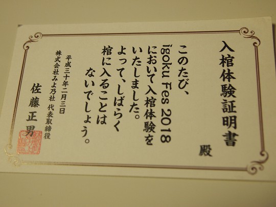 そして入棺体験証をゲット☆