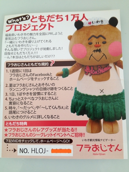 そのほか、「ともだち特典」として、フラおじさんと一緒に写真を撮ってくれた人は、フラおじさんフェイスブックに即日掲載、ともだちの写真がたまったら、フラおじさんオフィシャルホームページでも掲載されるそうです。(6月中旬予定)