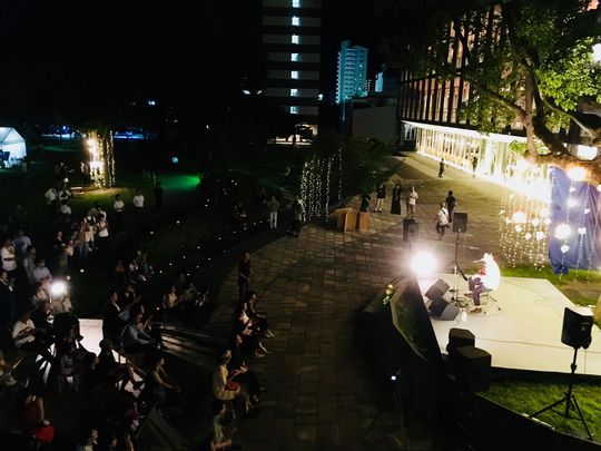 「極楽浄土」でPが連想するのは、いわきの国宝・白水阿弥陀堂の浄土庭園なのですが、この夜は公園空間が手作り感溢れる蓮の花などでステキにコーディネートされていて、平中央公園に現代の浄土庭園が出現していました!