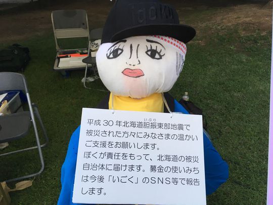 正式な名前は「いごくん」というのだそうです。今回は北海道胆振東部地震の募金担当としてお披露目されてました。じわじわくるP好みのキャラクターです。うーん何かしゃべらせたい。