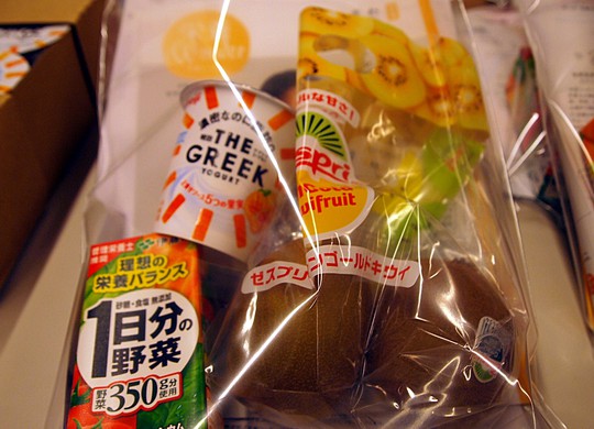 ・栄養士の団体からはいろいろもらっちゃったー。キウイ!(栄養ワンダー/福島県栄養士会いわき支部)