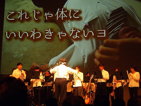 どアタマからこんないでたちのひとが弾き語りスタイルで「オラは死んじまっただー♪」(笑)