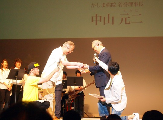 今回の受賞者は、長年地域医療に貢献された医師の中山さんと、いわき市シルバーリハビリ体操指導士会の三田さん。サンタさん!!