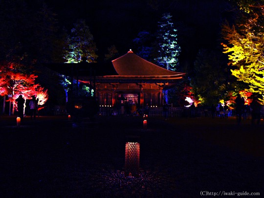 毎年グレードアップを続けている白水阿弥陀堂紅葉ライトアップ。