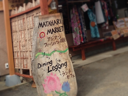 店前の看板には「MATAHARI MARKET」 と「Dining Legong」となっています。一軒家の小さなお店ですが雑貨店と飲食店を兼ねています。