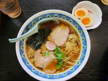 写真はワンタンメン普通盛+煮玉子