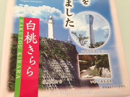 パッケージには、いわきマリンタワー、湯本温泉、塩屋崎灯台が描かれています。