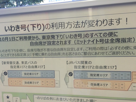 回数券は料金はおトクですが、昨年10月より東京からいわきへの高速バス(下り)では回数券の人は座席の指定(=予約)ができなくなりました。