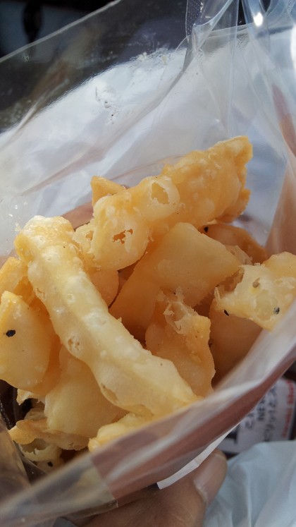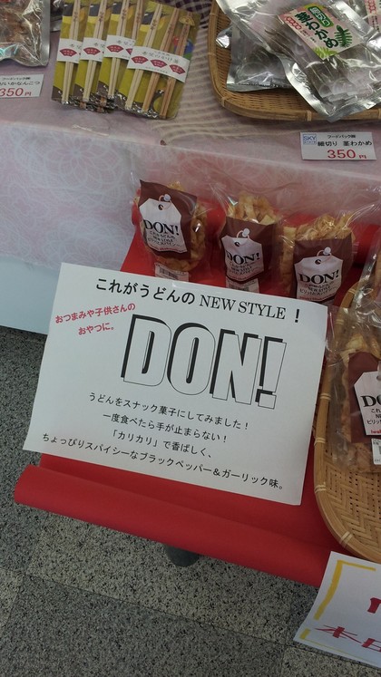 うん、一見ふつうのスナックに見えますが、なんとこれ、うどんでできてます!食べてみると、かなりスパイシーで食感もパリパリ。でも、たしかにうどんの味がします!