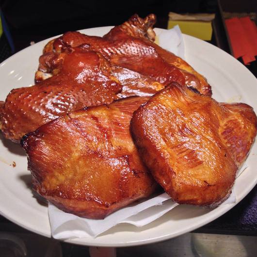 豚トロスモーク、スモークチキン各¥500
