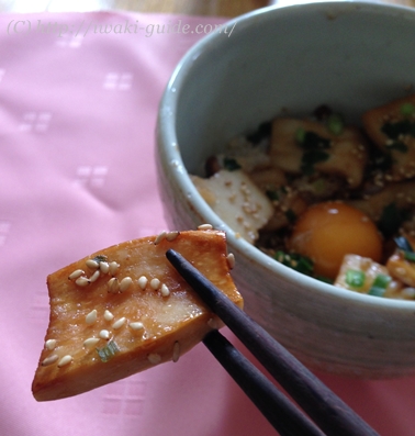3mm厚さくらいにカットし、ごま油で両面をこんがり焼きます。