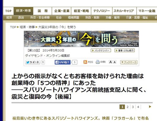 先週、ダイヤモンド・オンラインに掲載されているスパリゾートハワイアンズ前統括支配人へのインタビュー記事(前編)の取材経緯をご紹介しましたが、本日後編がアップされていました。
