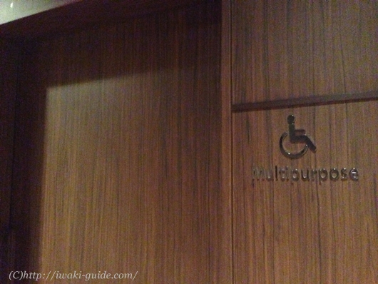ロビーフロアーのすぐ横には喫煙所とお手洗い。車いすの方用のお手洗いもロビーすぐ横にあります。