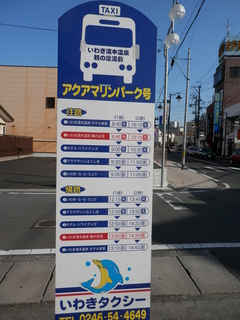・湯本駅近くの「つるの足湯」からの乗り合いタクシー「アクアマリンパーク号」(予約必要)