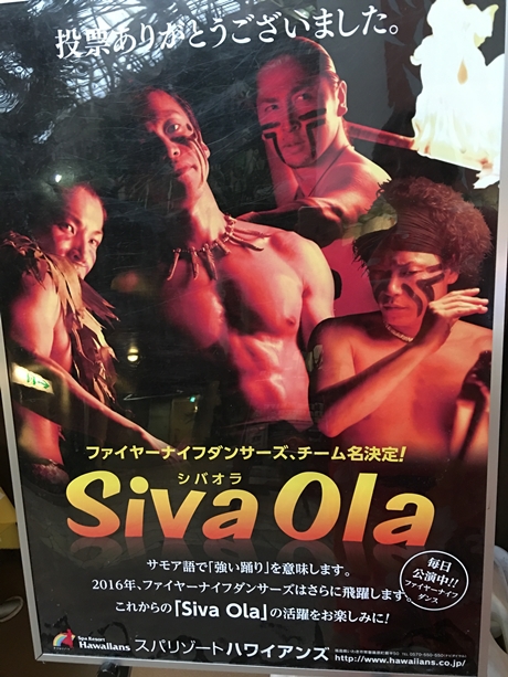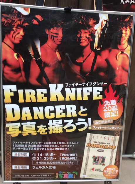 ハワイアンズではそんなSivaOla ファイヤーナイフダンサーと一緒い写真が撮れるのです。昼と夜、ショーのあとにハワイアンズマーケットや出口に通じるウェルカム広場でやってます。