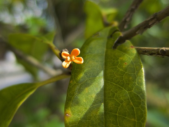 今日(9月19日)にその木の様子をみてみると、僅か数輪ですが咲いている花がありました。まだ芳香を放つには至らなくともそう遠くないうちにそれを楽しむことができそうです。あの香りを感じると秋真っ只中!ですね。
