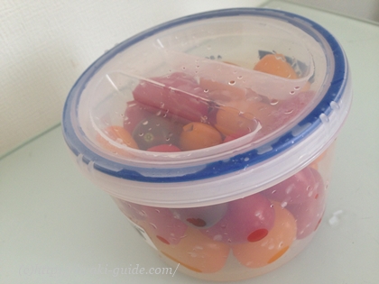 洗ってヘタをとったものを、容器にいれて冷蔵庫にいれておいても数日であっというまに無くなってしまいます。