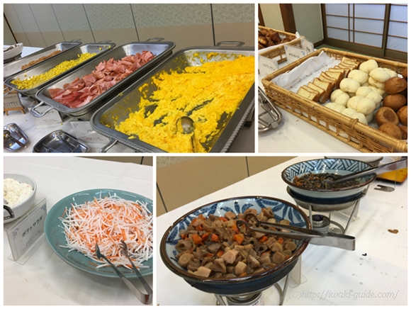 朝食は雰囲気でいえばこれまたTHE昭和の旅館な感じです。ホテルハワイアンズの朝食は宴会場でのビュッフェスタイルでした。