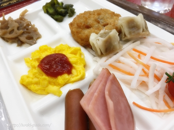 朝食は雰囲気でいえばこれまたTHE昭和の旅館な感じです。ホテルハワイアンズの朝食は宴会場でのビュッフェスタイルでした。