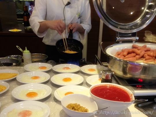 高級ホテルのように、目の前でオムレツを焼いてくれます!ふわっふわです!