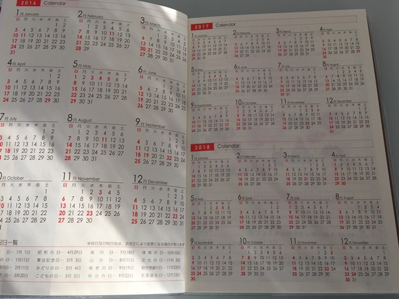 年間カレンダー 2016.2017.2018