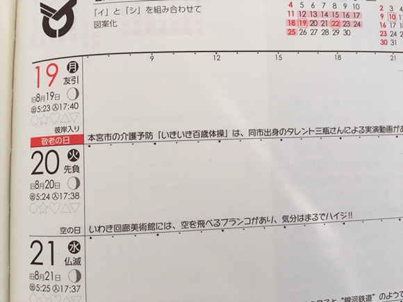 ふくしま手帳2016のカレンダー