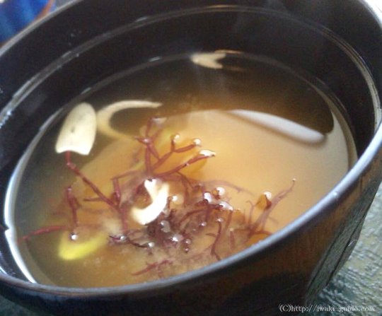 汁物はもずくの味噌汁。一気に飲み干します。