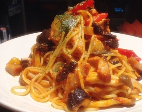 アルデンテのパスタとは違った、モチモチ食感のナポリタンの出来上がりです。
