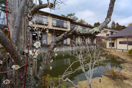 本館下に咲く白梅。