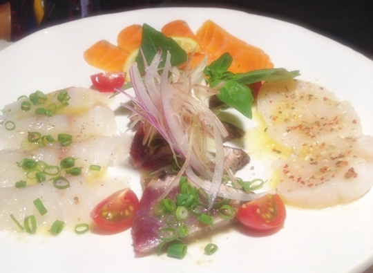 カルパッチョの4種盛り、オシャレですよね。
