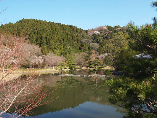 浄土庭園の桜はあくまでつつましやかに。