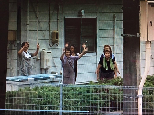 今回は大型のバスに乗り込んで発車したら、お母さんたちが走ってプレハブの裏まででてきて手を降ってくださいました。