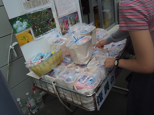 その後、浜風商店街で売られているお漬物や「復興のお花」をメディアジーンの皆さんお買い上げくださいました。