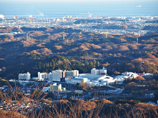 手前にはスパリゾートハワイアンズ。
