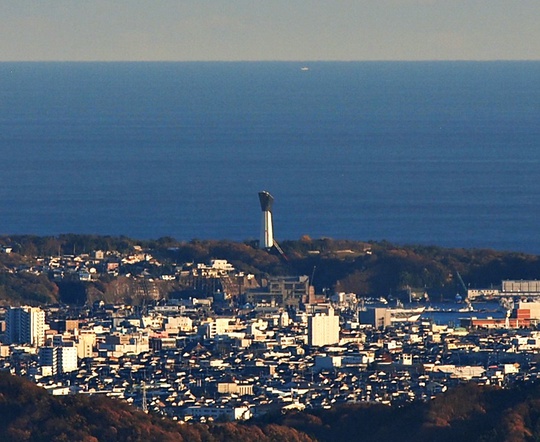 小名浜市街地の先にいわきマリンタワーもみえます。