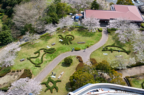 そのままマリンタワースカイデッキへ。園内の桜が一望できます。