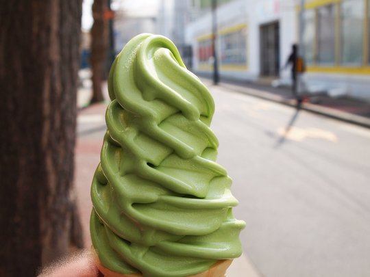 定番中の定番、抹茶ソフトクリームをゲット。老舗のお茶屋さんの抹茶ソフトクリームです!