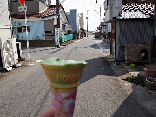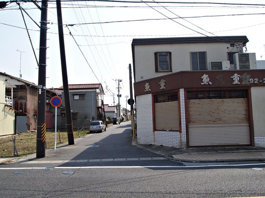 ぺろぺろ、うまうましながら、小名浜本町通りを横切り、汐風竹町通りを海岸方向へ。