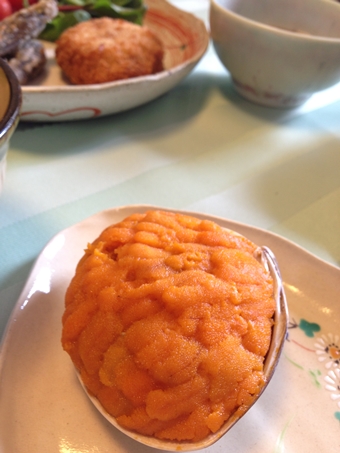 ウニの貝焼き おのざきさんから。