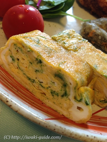 スエヒロ産業の乾燥青のりをいれた卵焼き。