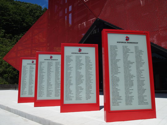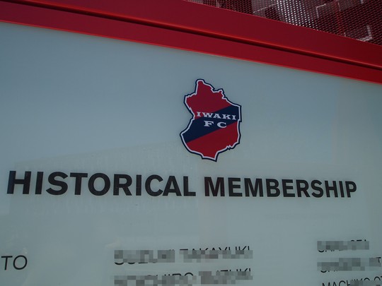 これはいわきFC初代ファンクラブ会員特典のメンバーシッププレートで、初代会員になった人たちの名前がぜんぶ書かれているんですって!