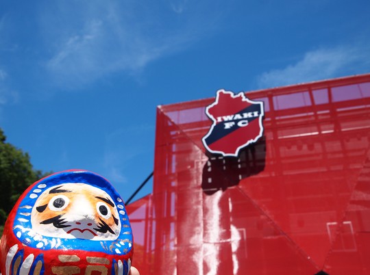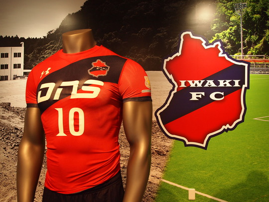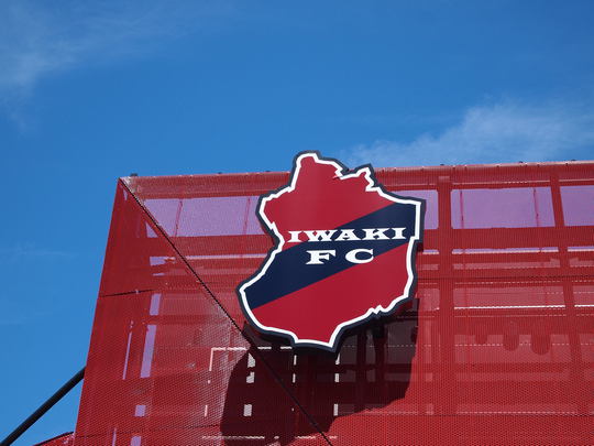 これがチームのエンブレム。いわき市のかたちになってて、赤と青がチームカラーなのかー。かっこいいなぁ。