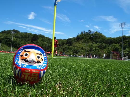 楽しそう。ボクもやってみたくなったけど、Pさんにいわきだるまには無理なのかなってきいたら、「キックはできなくても、ヘディングができるしトラップもできる」だって。