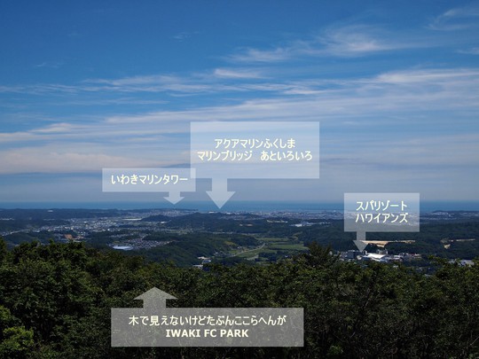 写真の正面が太平洋で、右側が勿来や茨城方面、左側が平や双葉方面。いわきは広くて、ボクはあまりよくわかりません。