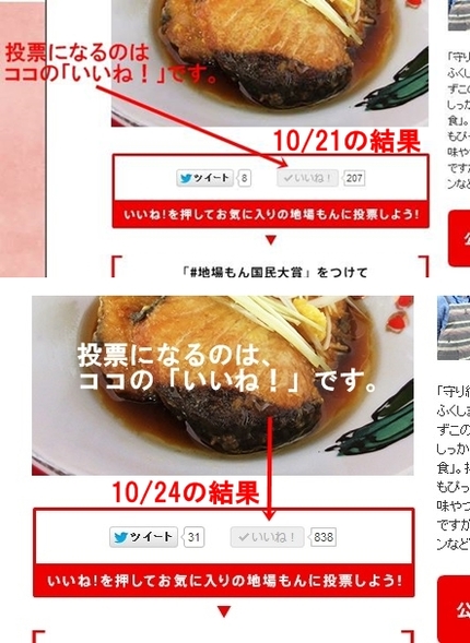 ▼投票の対象になるのは、こちらのページの「いいね!」です