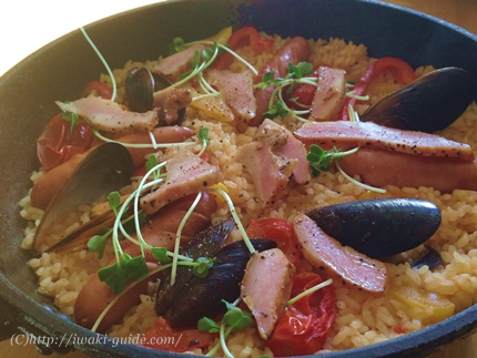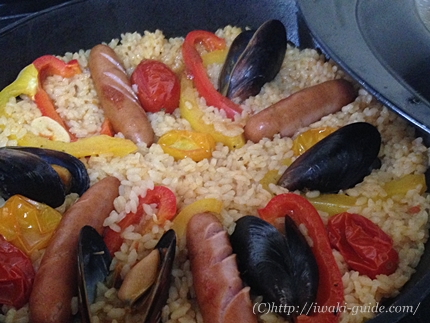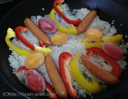 「とまとランドいわきのトマトソース」を使って、フライパンで超簡単パエリアを作りました。