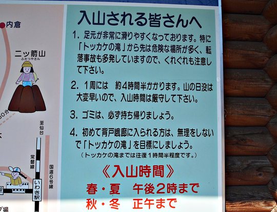 東日本大震災の影響で崩落箇所があり、トッカケの滝から先は立ち入り禁止となっています(平成27年7月現在)。